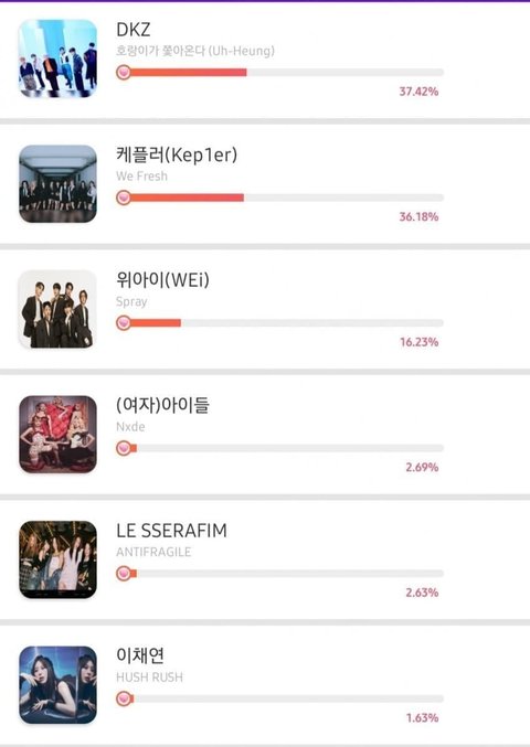 투표는 모르겠고 이미 음원에서 저 정도면 거의 판가름 난 거 아닌가