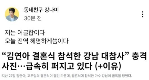 강남은 촬영 스케줄로 결혼식 참석 못했다고 함