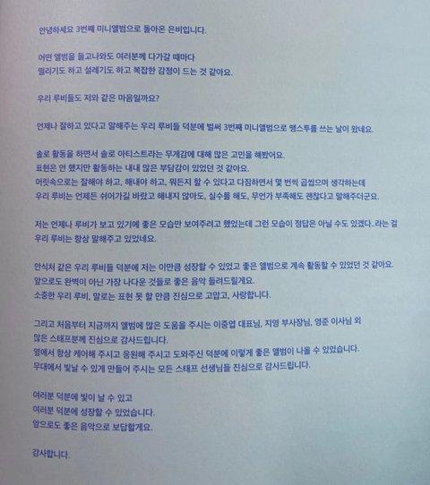 다정한 은비의 이번 앨범 땡스투랑 프메ㅠㅠ