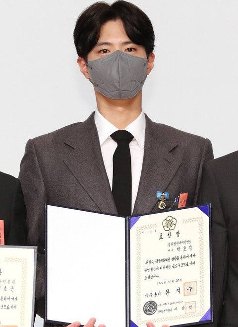 박보검은 성실하게 저축을 실천하고, 장애 어린이 재활치료비 후원과 희망의 집짓기 봉사 등 다양한 후원활동을 통해 공인으로서 선한 영향력 확산에 기여한 공로로 국무총리 표창을 수상함