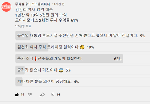 김건희 주가조작 실시간 투표 댓글 가관임(사진有)