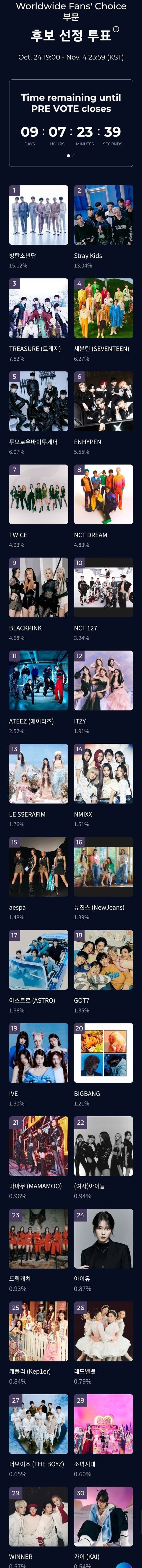 2022 MAMA 팬투표 현재 상황