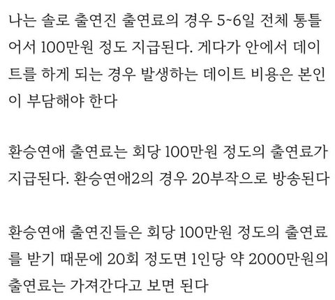 나는솔로랑 환승연애 출연료 라는데