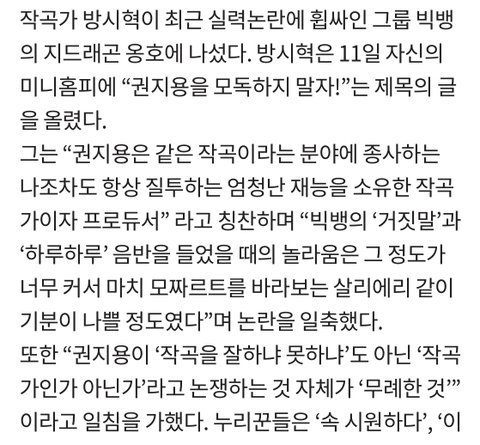 ㄹㅇ 비오가 얘기한 고민?에 대해서 그 누구보다 잘 공감하고 조언해줄 수 있는 사람이 지디일듯