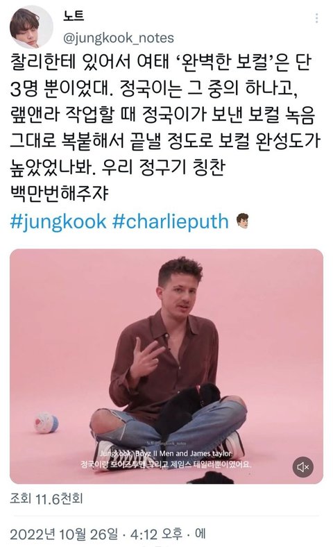 찰리푸스도 인정하는 정국이 보컬