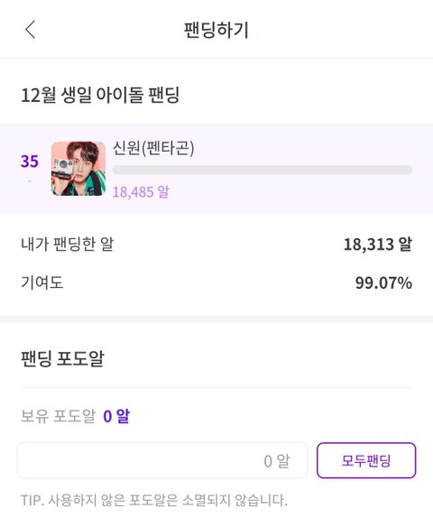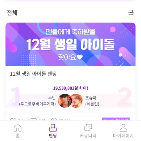 포도알에서 12월 생일 아이돌 팬딩 열렸는데 신원이 투표 합시당..