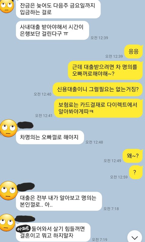 차는 원래 남자가 신용대출 받아서 살 예정이었는데요, 이 때 당시 명의 얘기가 나온겁니다.