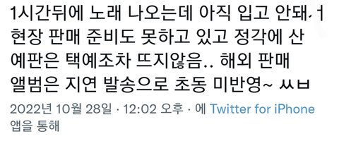 이 똥쟁이 색기들 때문에 군대로 욕이란 욕은 다 쳐먹고 앨범은 집계도 제대로 안되고 도대체 이게 뭐임 이게 소속사냐?