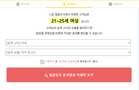 21~25세 여성으로나옵니다.. 분명 20대후반 남자인 제사진으로 분석을돌렸는데..