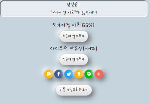 약간 옆모습사진으로 돌렸더니.. 오마이걸 지호 66% 아이브 안유진 33%가 나오네요