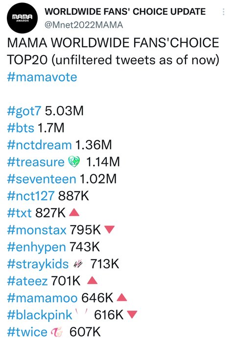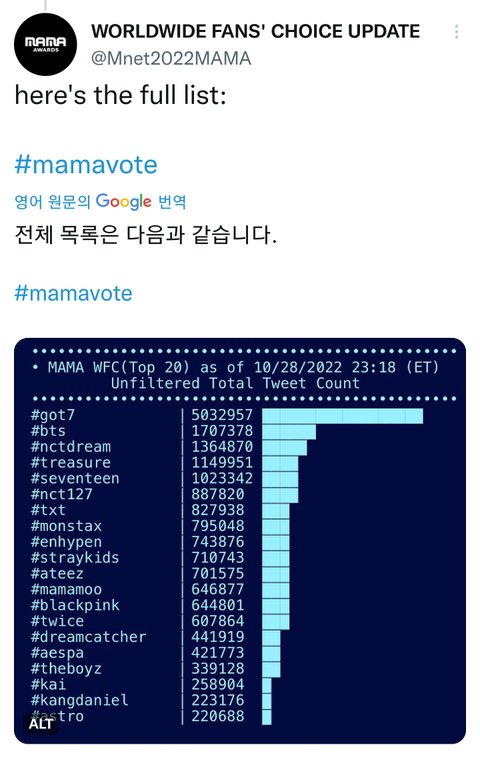 마마투표 got7미쳤다. 방탄 두배반정도 많네
