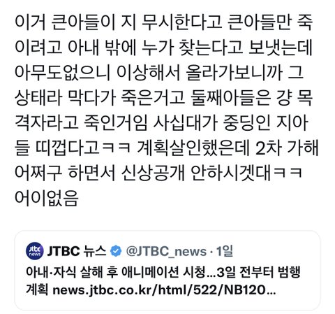 아내가 남편자식 죽이고 저렇게 한 사건 하나 터졌어봐 지금 너도나도 가해자 얼굴,실명 다 알고 대한민국 뒤집어짐ㄹㅇ
