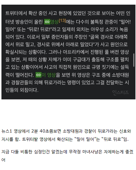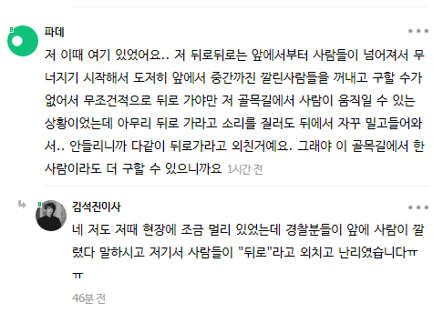 경찰이 시켜서 '뒤로, 뒤로' 한거였다고 함..