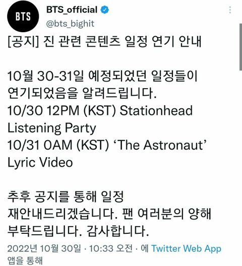 오늘 내일 예정이던 콘텐츠 일정 연기 됐대