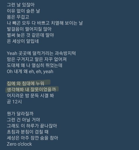 제로 어클락 가사 너무 좋지 럽마셀도 그렇고