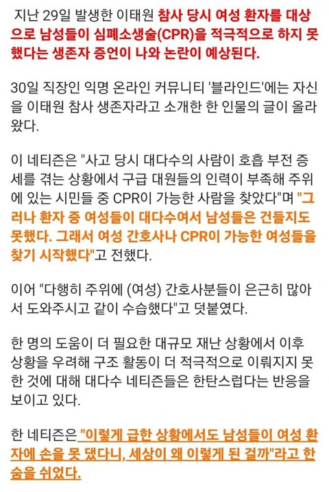 이태원 남자들이 여자한테 cpr 안한 이유