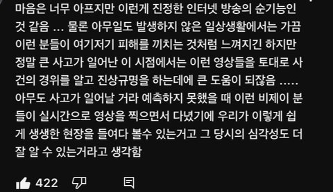 배지터 이분 진짜 의인이심 .... 사람도 대여섯명이나 구조하시고 화면도 일부러 현장 안비추고 자기 얼굴만 찍으시고 ...