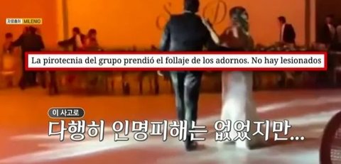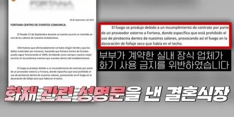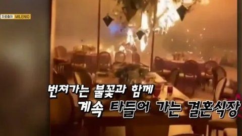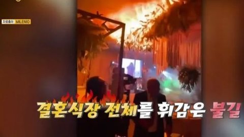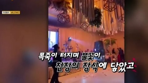 결혼식장 천장에 있는 장식에 닿으면서 화재가 발생,