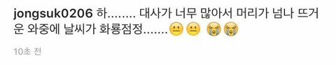 더블유 촬영당시 이종석인별에서 대사량 때문에 머리가 뜨거워진다고ㅋㅋㅋ