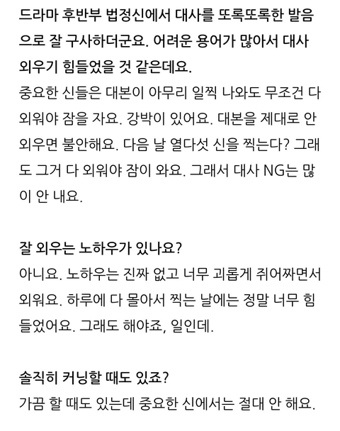 <당잠사 종영 후 대사 암기에 대한 인터뷰>