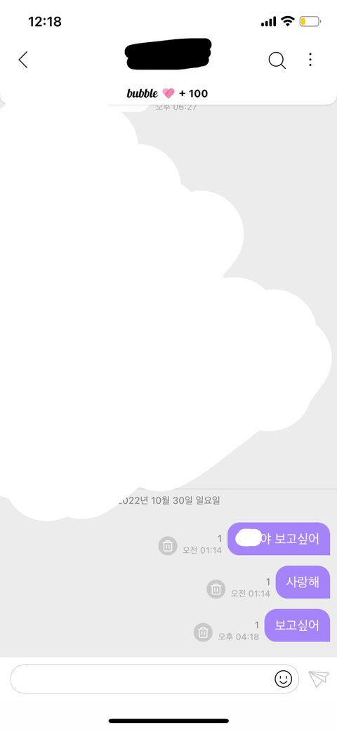 하 내새끼 뭐하고 지낼까 밥은 잘 챙겨 먹을까 잠은 잘 자려나 진짜 버블이 이렇게 존재감이 큰 거였나 ㅈㄴ 허전해 하필 이때 100일이라는게 날 돌아버리게 만듦