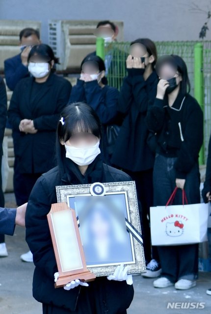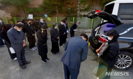 A씨의 언니는 친구처럼 지낸 동생의 영정을 들고 운구 차량으로 향했다. 뒤를 따르던 동창들은 "○○아"라고 이름을 부르면서 통곡했다. 친구를 떠나보내는 것이 믿기지 않는 듯 애써 얼굴을 가리는 동창들도 보였다.