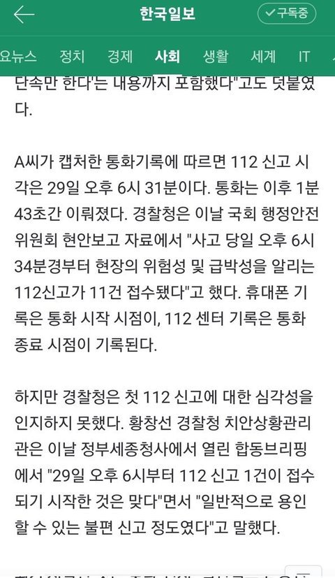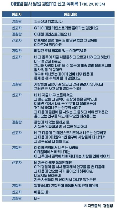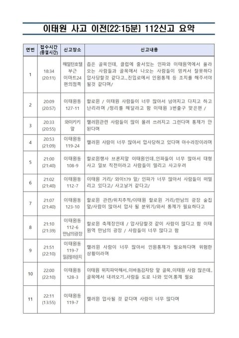 참사 당일, 압사 사고 전 압사 당할거 같다는 신고가 11건이상 왔다고 함