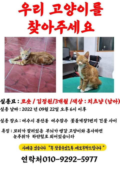 여수 봉산동에서 코숏 고양이가 실종되었어요. 실종된지 41일인데 고양이탐정 부르자고 엄마한테 말했더니 화만내시고 안부르셔요 포기는 절대 안할거고요 가망이 있을까요?