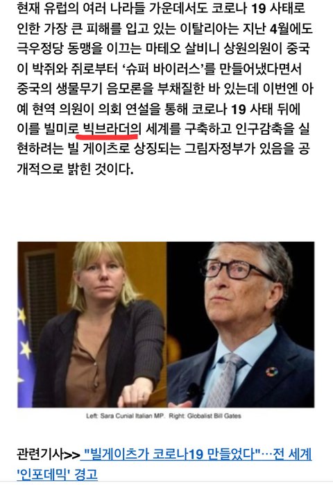 빌게이츠의 음모를 공개적으로 밝히고 있는 이탈리아 의원