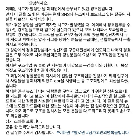 현재 SNS와 뉴스에 보도되고 있는 잘못된 사실을 바로 잡기 위해 판에 쓰면 사람들이 많이 볼 거라 생각이 들어 올립니다.