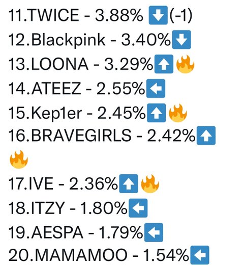 블핑= 9위 > 12위
