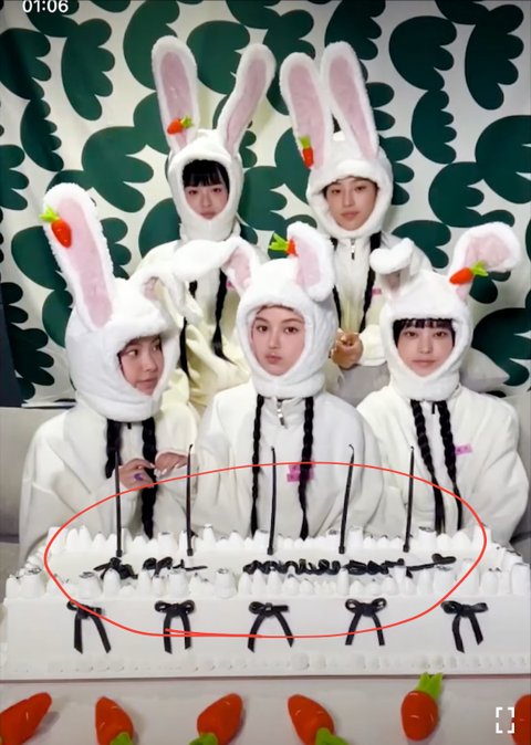원래 이 모양이어야 되는데 정작 뉴진스 앞에 온 케이크는 왜 토끼귀가 눌려있어?