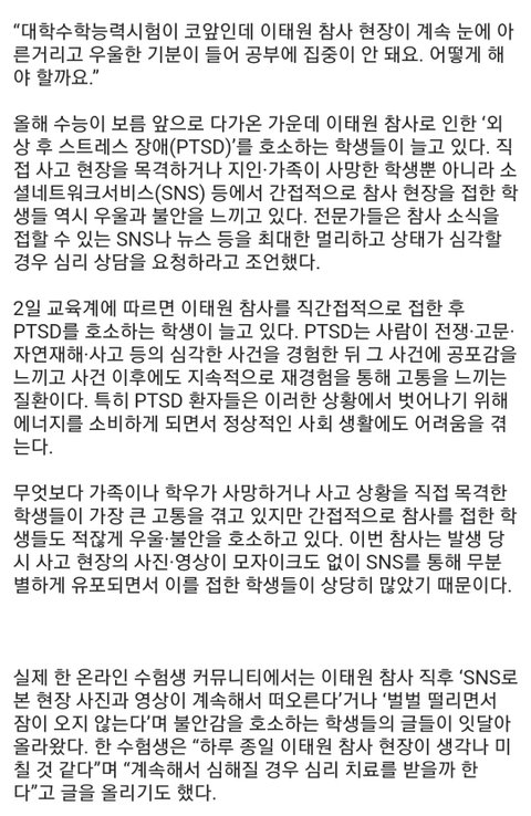 수험생들 이태원 트라우마 호소
