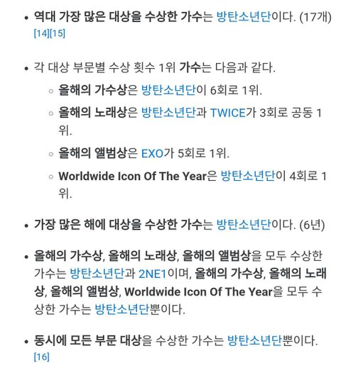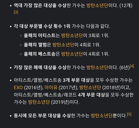멜론도 미쳤지만 마마 기록이 ㄹㅇ 개미쳤지 ㅋㅋㅋㅋ 4개 부문 대상 3년 연속 싹쓸이에 가수상만 6년째라 이 기록은 앞으로도 절대 안깨질듯