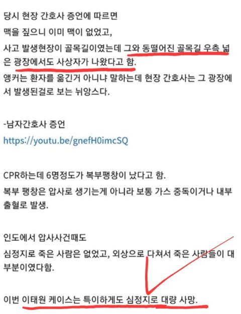 압사사고에 피토하고 구토하고 동시다발적으로 발견됐다고?