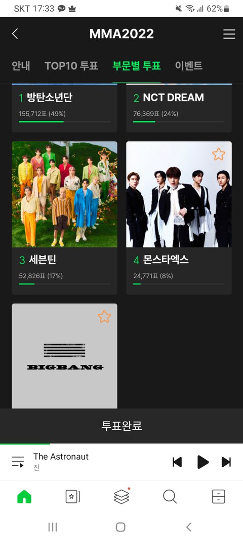멜뮤니깐 나머지 한 자리는 비투비 위너 하이라이트 중에 들어갔어야함 이 3팀은 월간 진입도 했음