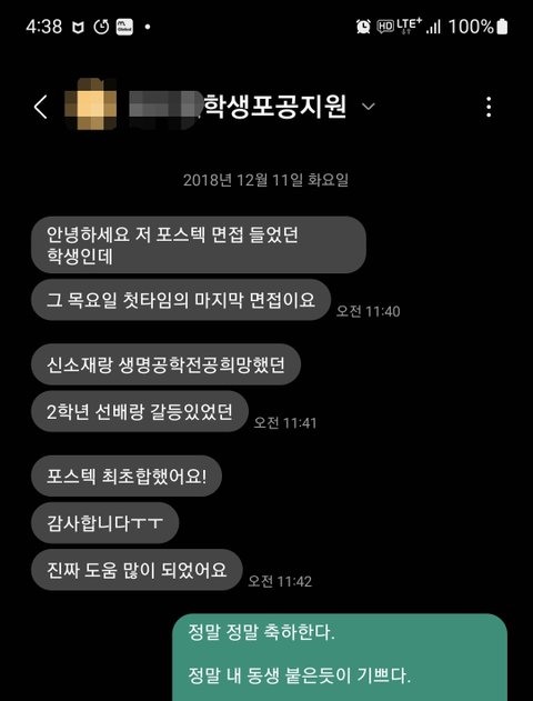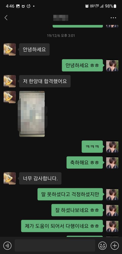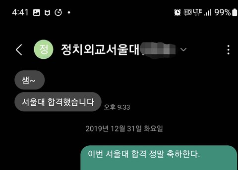 6. 아래는 서울대, 한양대, 포스텍 입학을 도와준 학생들이 보내준 문자입니다.