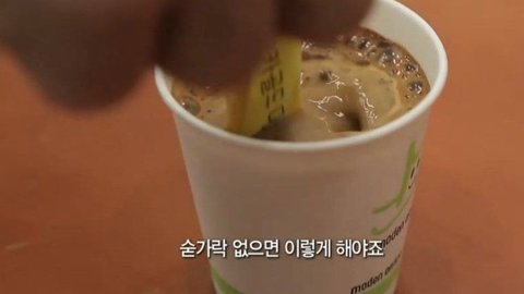 숟가락 없을 때 스틱으로 젓는 것 까지 완-벽