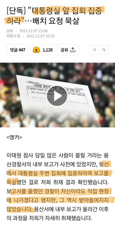 핼러윈 몇일 전부터 인파 통제를 위한 기동대 파견을 지속적으로 (그들의 말을 빌리면 '간곡히')요청했는데도, 거듭 거절했던 행정안전부와 경찰청장 등 윗선은 입건되지 않았어요.https://n.news.naver.com/article/421/0006438553?sid=102