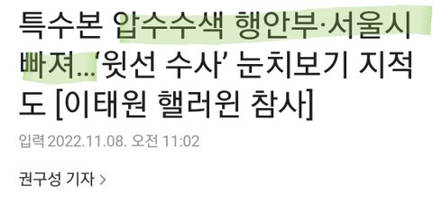 그날 기동대 파견 없이 22명이서 열일했던 이태원 파출소 직원들 감찰, 용산소방서장 입건, 사고현장 근처 해밀턴 호텔 압수수색;