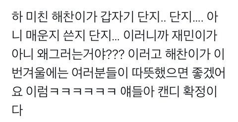 캔디 한다고 거의 소리를 지르는데