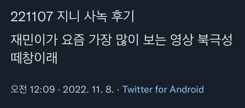 재민이 유튜브에서 북극성떼창 제일 많이 본대