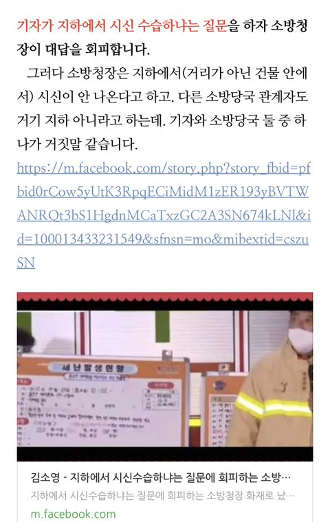 기자가 지하(건물)에서 시신 수습하고 있지 않냐고 묻자