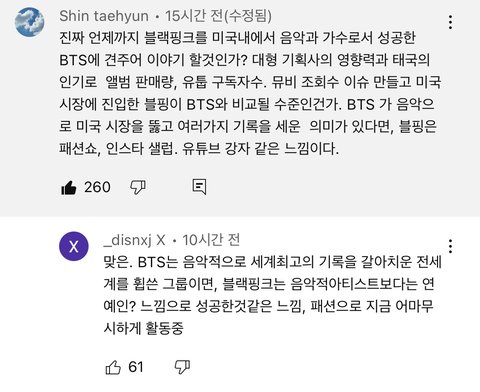 둘다 월클이긴 한데 결이 다른듯 방탄은 ㄹㅇ 음악,가수 하나로 월클 먹은느낌이고 블핑은 패션쇼, 인스타 셀럽 같은 느낌임