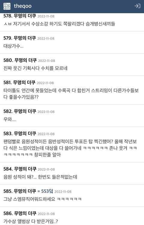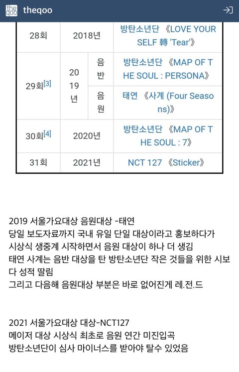 음원 60퍼 들어가는데 음싸 시상식에서 연간 1,2위 예상곡을 제끼고 앨범상 가수상을 타간다는게 이건 뭐ㅋㅋㅋㅋㅋ