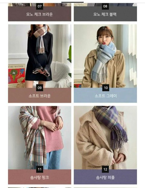 목도리 뭐가 젤 이뿌냠 골라주면 내가 수능이나 기말 잘보게 기도해줄겡...