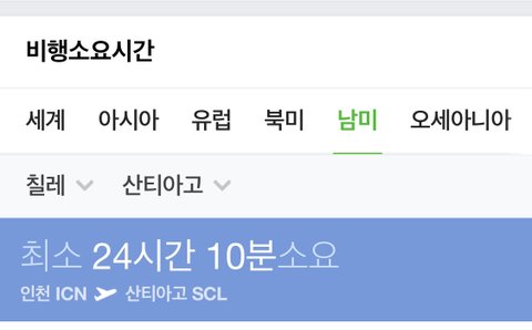 실제로는 거의 30시간 걸린다는데.. 왕복 60시간 ㅎㄷㄷ;; 칠레가 진짜 먼 나라구나..