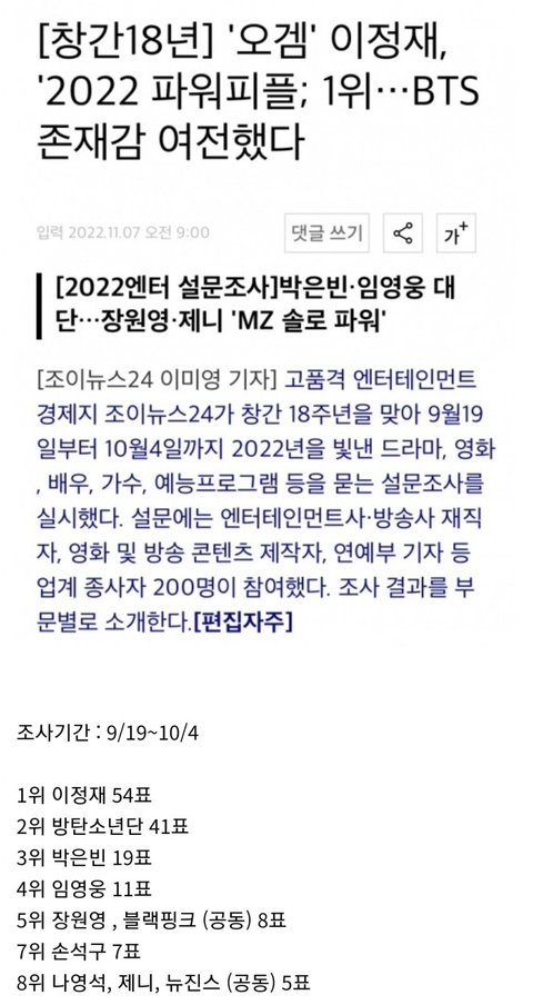 2022년 올해 최고의 가수