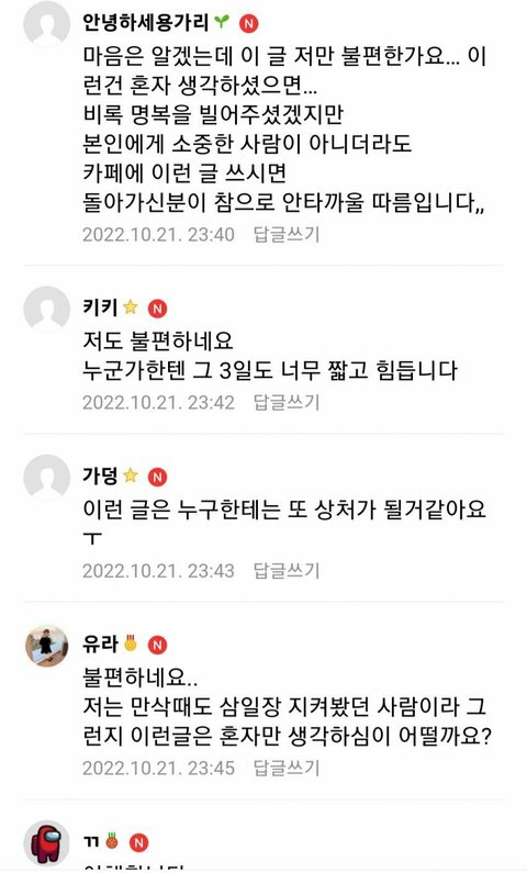 시어머니가 돌아가셨어요. 제가 말 실수를 한걸까요.