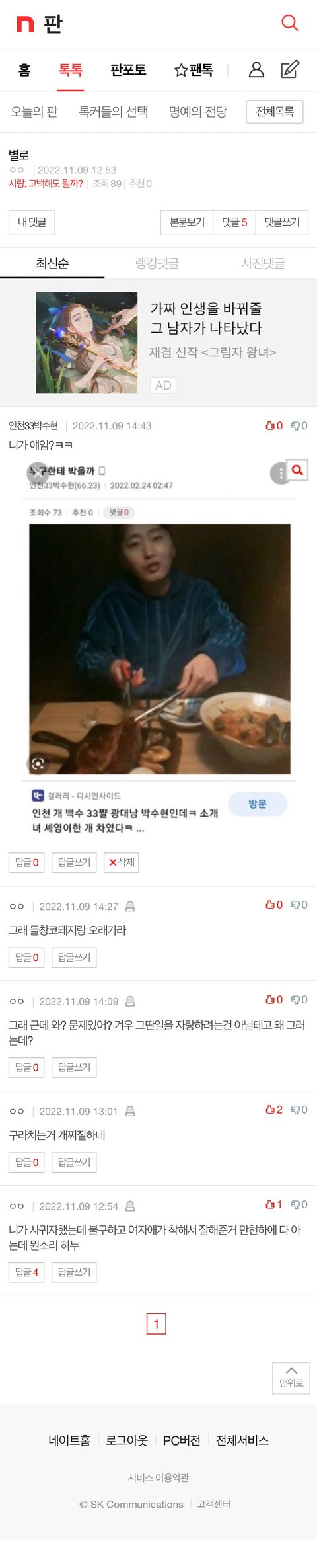 댓글 많은 톡